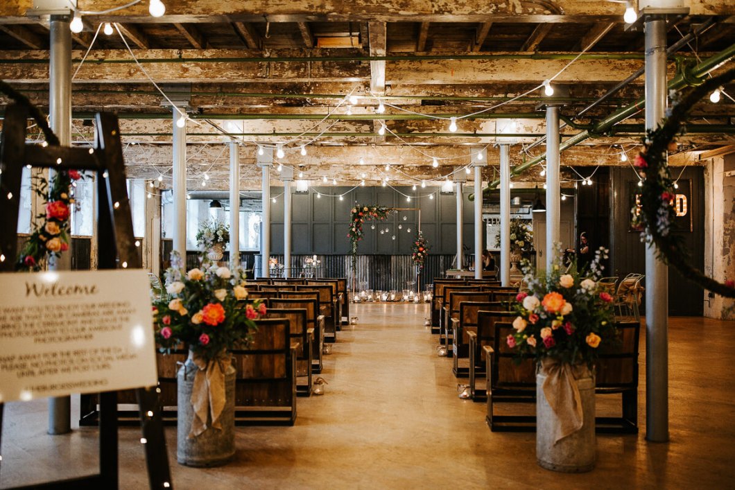 Civil Ceremonies-Bathed in natural light and set with fabulous reclaimed cinema seating to create a natural aisle, wedding music echoes around the industrial bare walls – the scene is set for your big day.